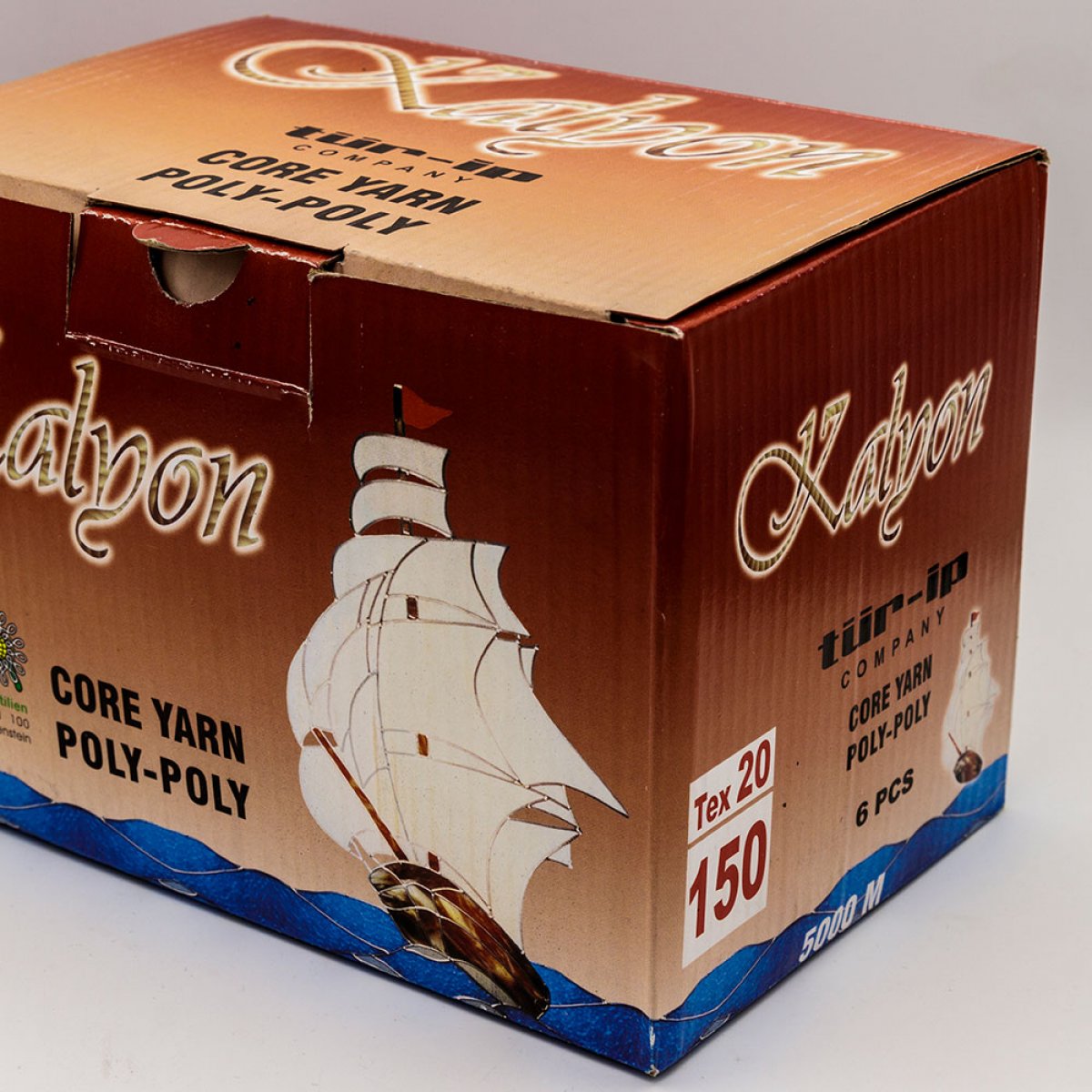 KALYON 150 numara iplik, sürekli filament polyester üzerine polyester ya da pamuk sarılarak üretilmektedir. KALYON kataloğumuzda 475 adet renk seçeneği ve 14'ten fazla etiket numarası bulunmaktadır.