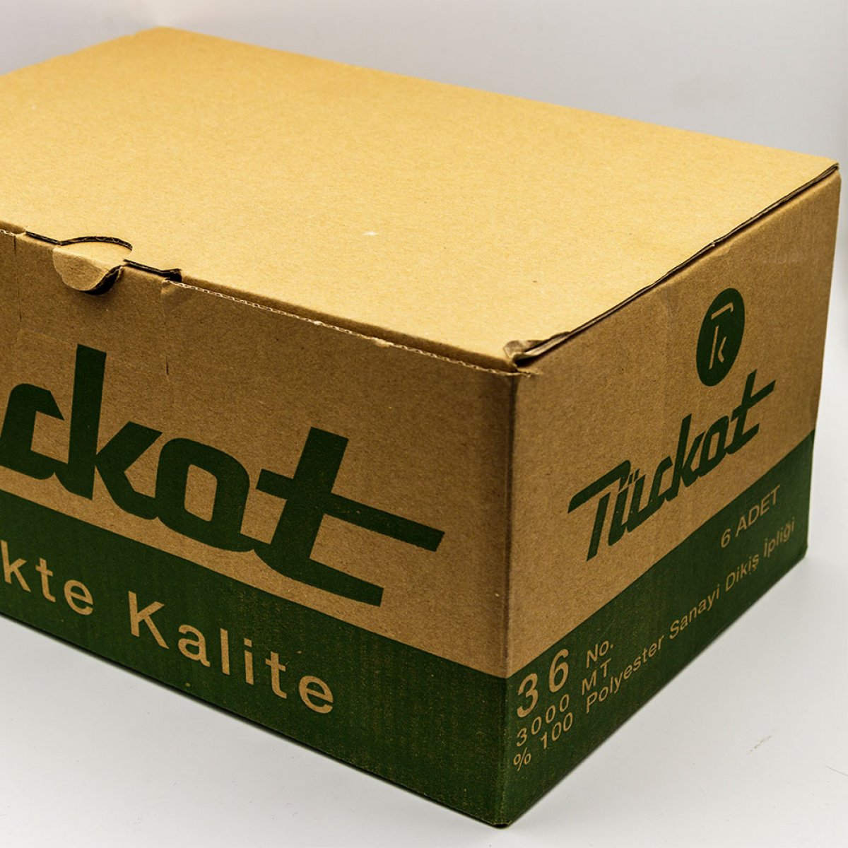 Türkot polyester dikiş ipliği. İpliklerin, bobin uzunluğu 3000 metredir.